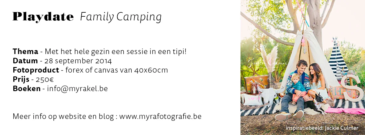 Het thema voor deze Playdate is Family Camping. We bouwen een gezellige tipi voor jullie, met veel kussens en zachte dekentjes in het gras. De Playdate is geschikt voor alle soorten gezinnen, jong en oud! Tijdens een sessie van een klein uurtje fotograferen we het gezin, en maken we van iedereen een apart portret.